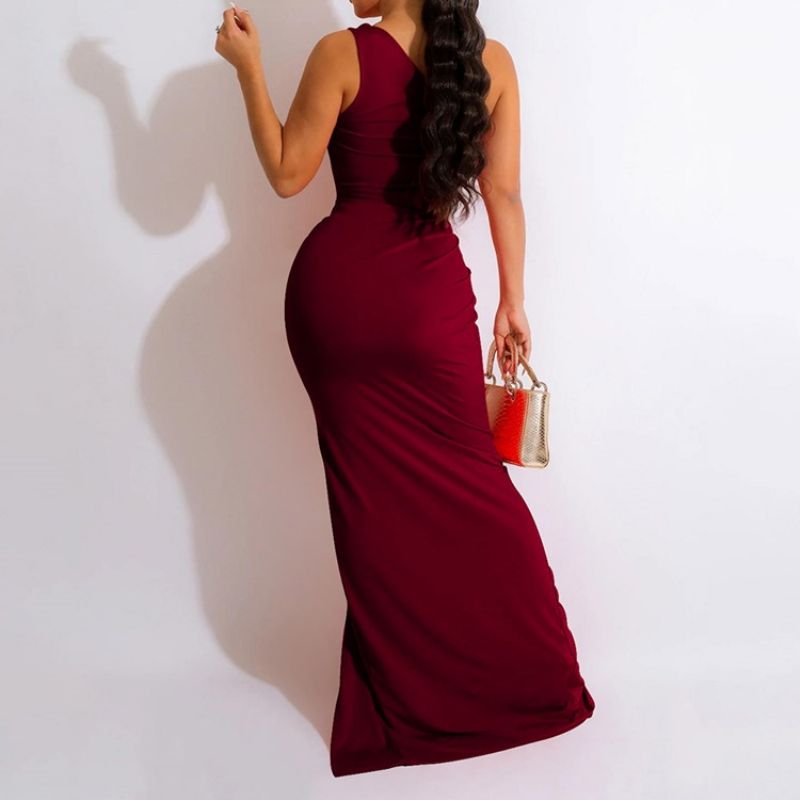 Αμάνικο Φόρεμα Δυτικό Μάξι Λοξό Γιακά Αμάνικο