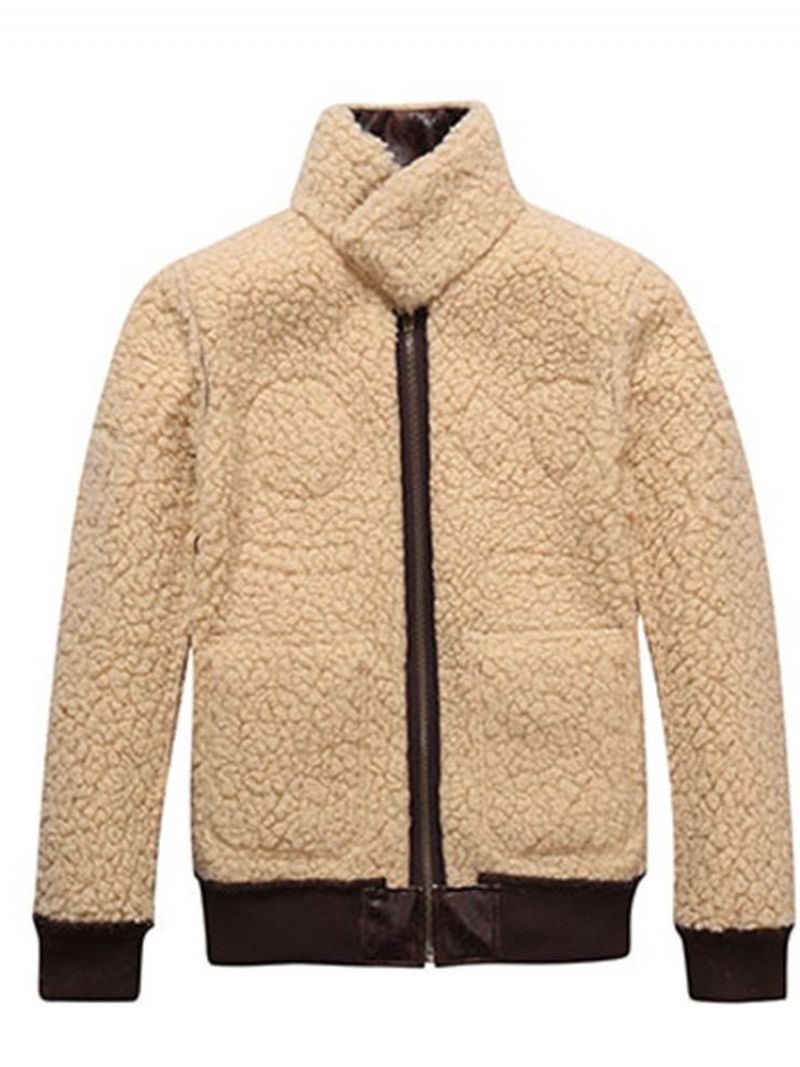 Ανδρικό Παλτό Pu Faux Shearling Thicken Warm Small Size
