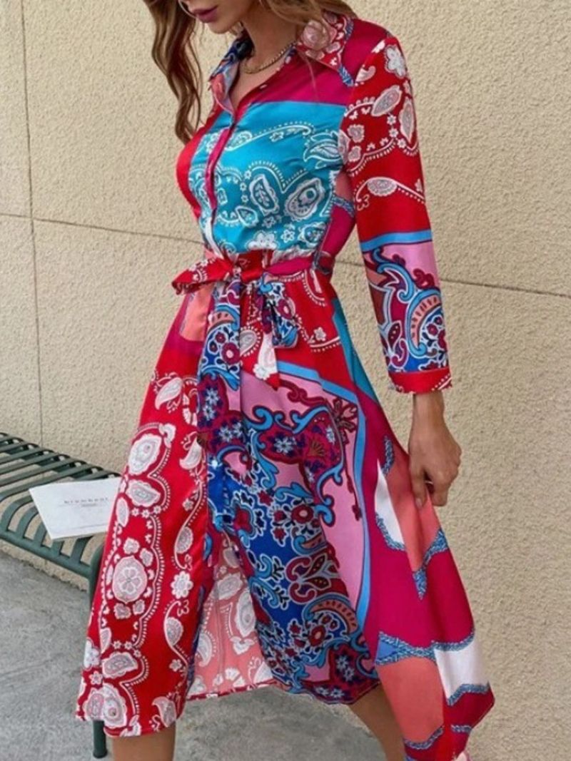 Άνετο Φόρεμα Με Στάμπα Τριών Τετάρτων Με Λουλούδια Στη Μέση Της Γάμπας