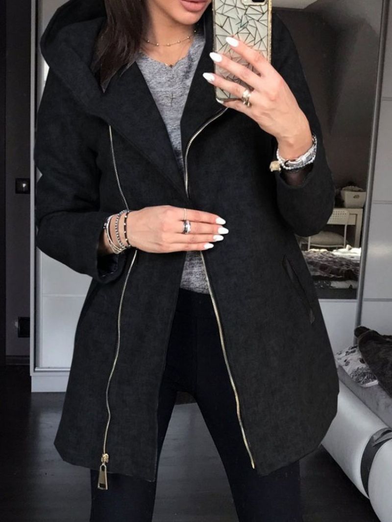 Ασύμμετρο Κανονικό Φαρδύ Φθινοπωρινό Πανωφόρι Μεσαίου Μήκους