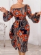Εκτύπωση Φόρεμα Με Ψηλόμεσο Κορμάκι Με Εννέα Πόντους Μανίκια