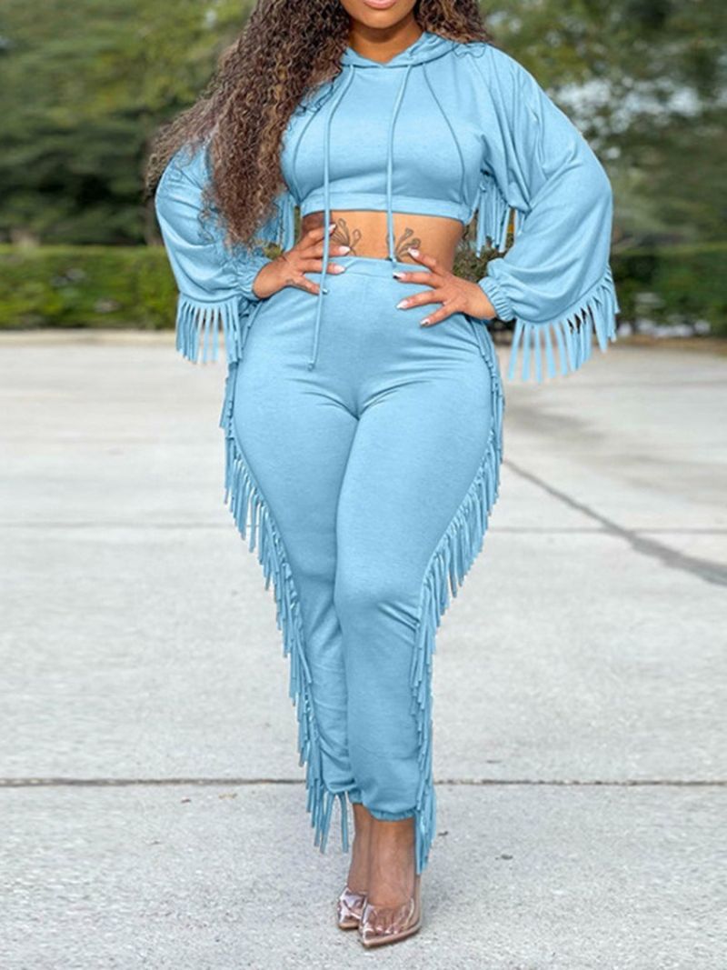 Fashion Hoodie Tassel Pencil Παντελόνι Με Κουκούλα Σετ Δύο Τεμαχίων