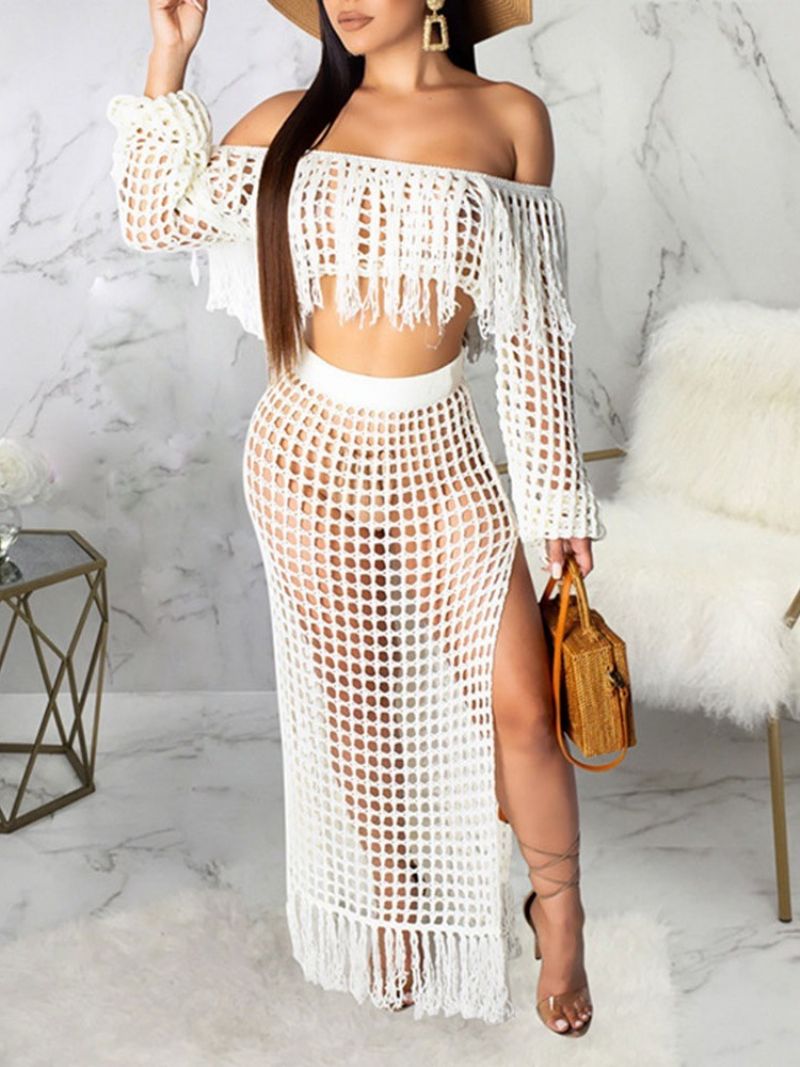 Fashion Plain Tassel Off Shoulder Γυναικείο Bodycon Σετ Δύο Τεμαχίων