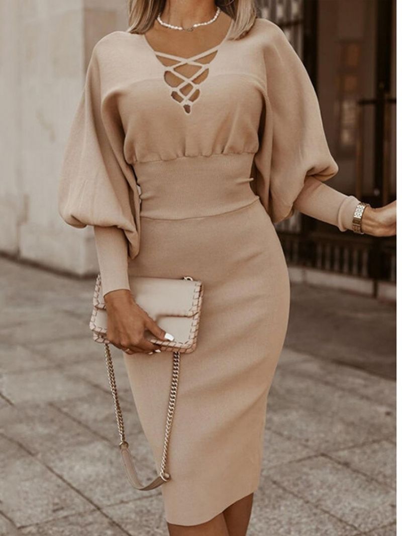 Φόρεμα Φθινοπωρινό Bodycon Με Εννέα Πόντους Μανίκια Mid-Calf