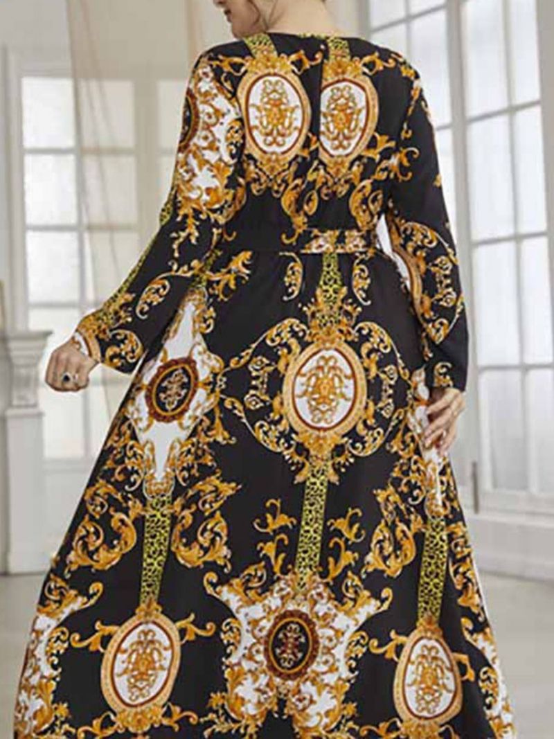 Φόρεμα Με Στάμπα Με Στρογγυλή Λαιμόκοψη Μέχρι Τον Αστράγαλο