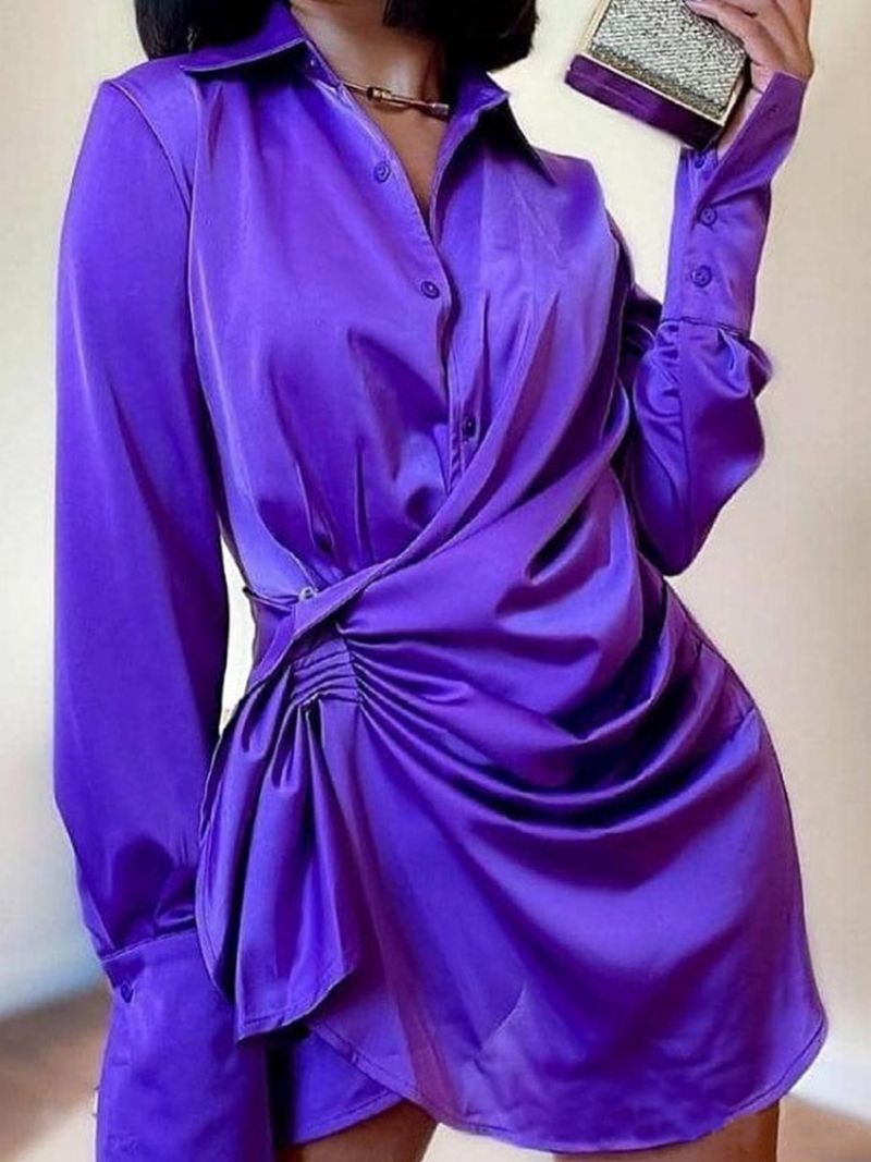 Φθινοπωρινό Φόρεμα Με Μακρυμάνικο Πέτο Με Κουμπί