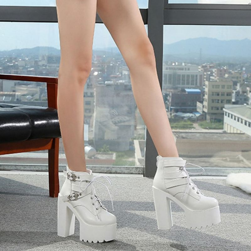 Γυναικείες Μπότες Πλατφόρμα Με Φερμουάρ Με Στρογγυλά Δάχτυλα Με Χοντρό Τακούνι Χιαστί Λουράκι