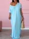 Γυναικείο Ίσιο Μάξι Φόρεμα Με Κοντό Μανίκι Τσέπη Μέχρι Το Πάτωμα