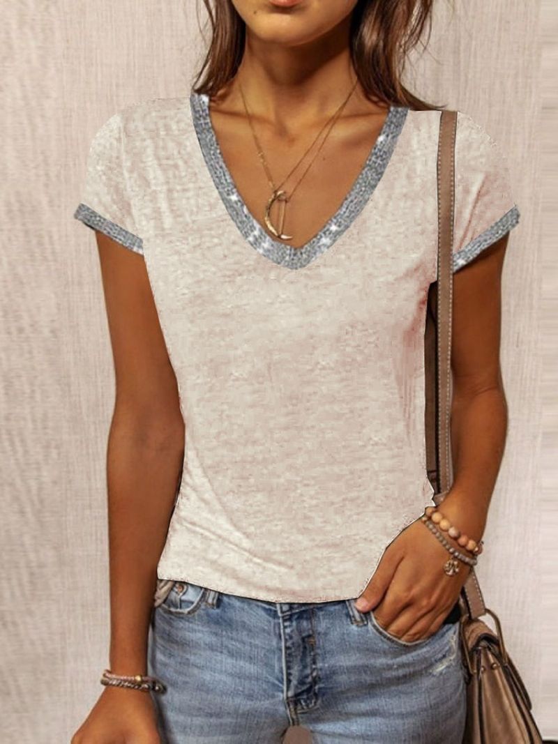 Γυναικείο Μπλουζάκι Western Με Κοντό Μανίκι Μπλοκ χρώματος Με Λαιμόκοψη