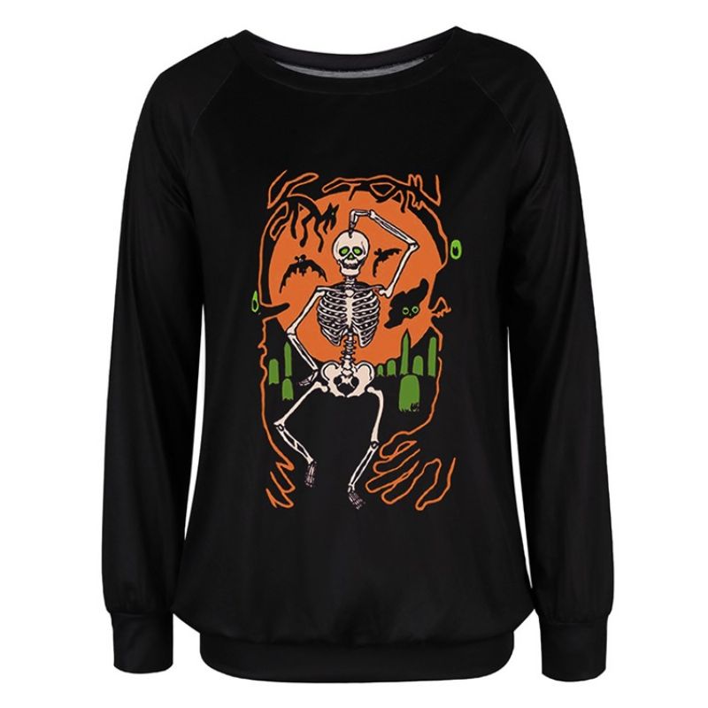 Halloween Print Skull Raglan Μανίκι Με Στρογγυλή Λαιμόκοψη Μακρυμάνικο Φούτερ