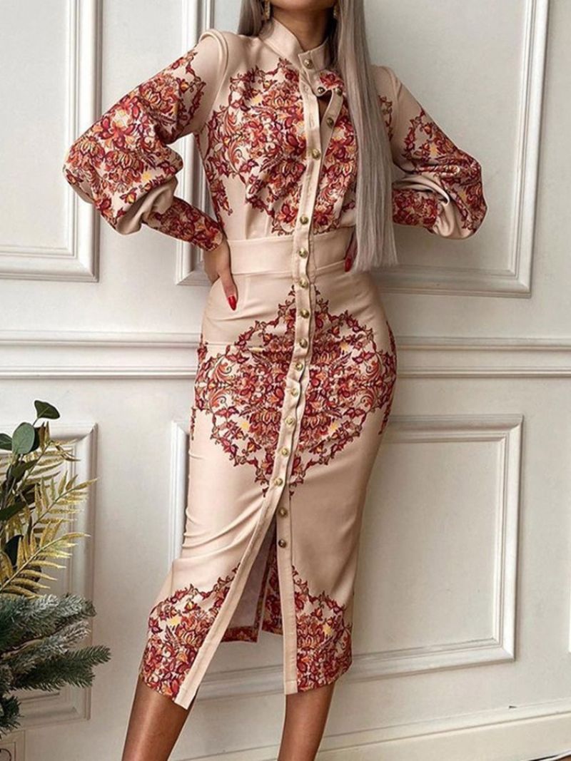 Κανονικό Φόρεμα Με Γιακά Με Μακρυμάνικο Μονόστομο