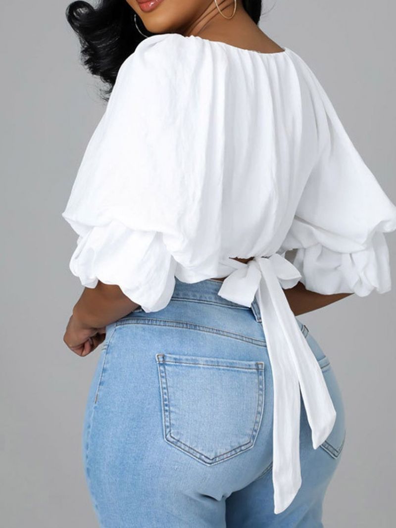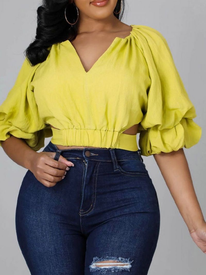 Κοντή Κοντή Μπλούζα Με Λαιμόκοψη Σε Σχήμα V
