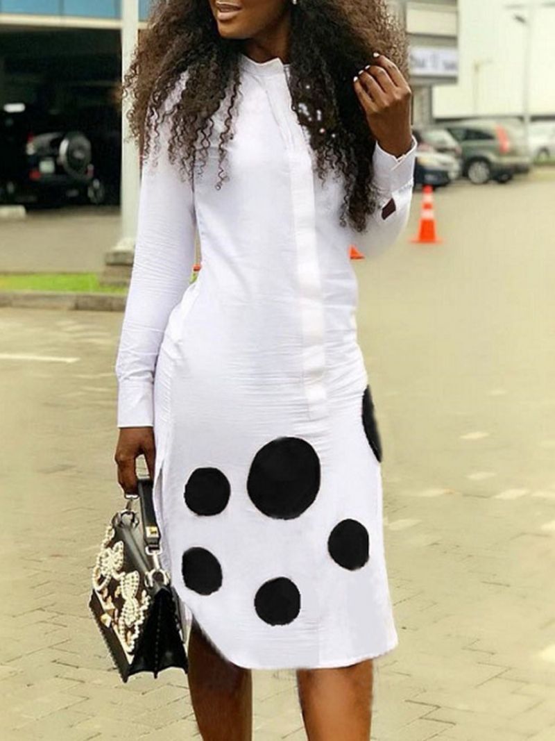 Μακρυμάνικο Φόρεμα Με Στάμπα Μέχρι Το Γόνατο