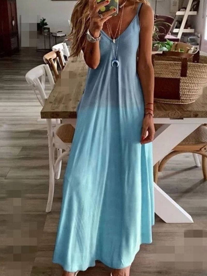 Μαξιμάξι Φόρεμα Με Ντεγκραντέ Αμάνικο Μακαρόνι Με Λαιμόκοψη