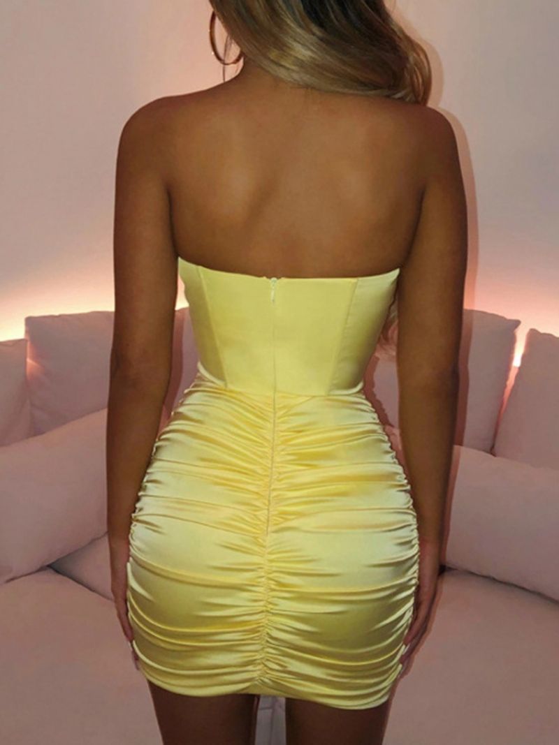 Μικρό Μαύρο Φόρεμα Αμάνικο Πλισέ Πάνω Από Το Γόνατο Σέξι Bodycon Φόρεμα