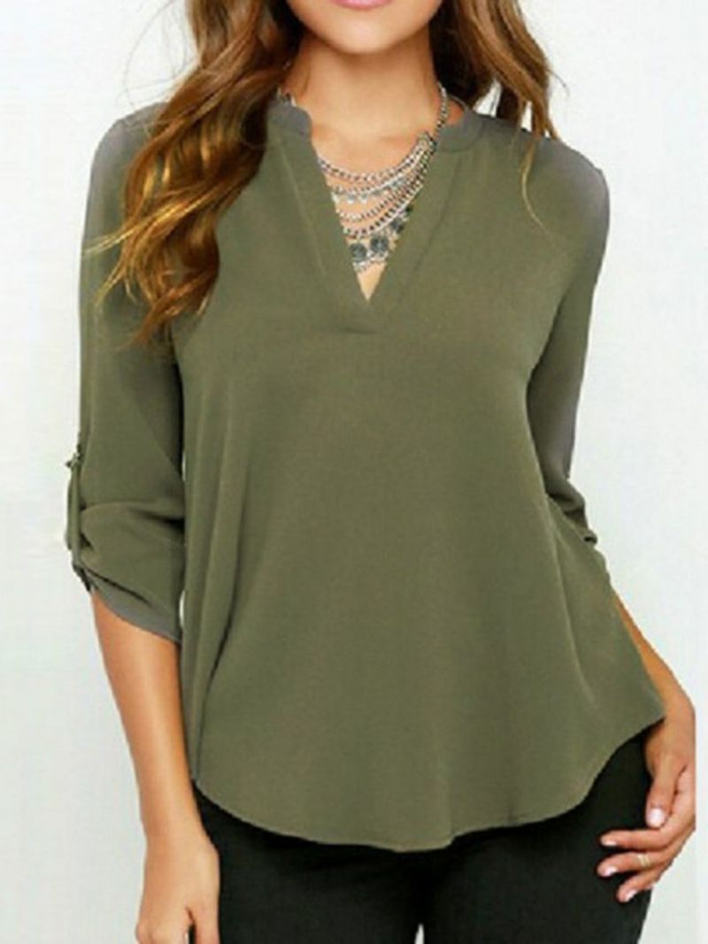 Μπλούζα Με Κανονική Μονόχρωμη Μακρυμάνικη Λαιμόκοψη Σε Μεσαίο Μήκος