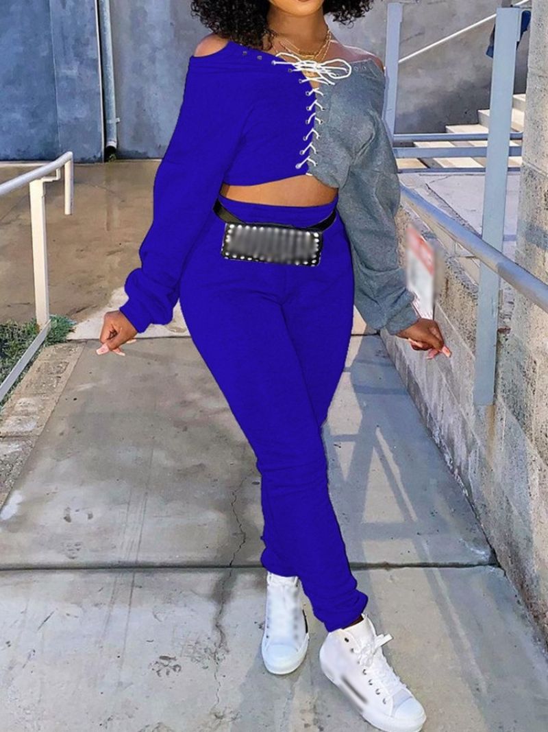 Παντελόνι Με Κορδόνια Μπλοκ χρώματος Pencil Pants Σετ Δύο Τεμαχίων