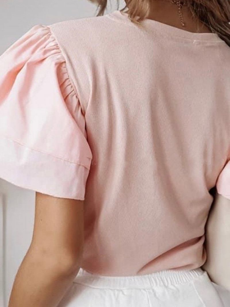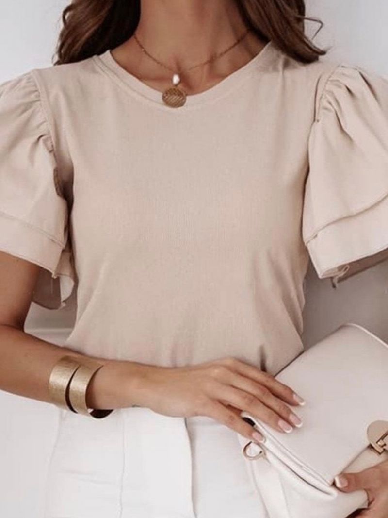 Στρογγυλή Λαιμόκοψη Μονό Κοντομάνικο Γυναικείο Μονόχρωμο Λευκό Μπλουζάκι
