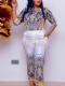 T-Shirt Fashion Print Στρογγυλή Λαιμόκοψη Ίσια Γυναικεία Σετ Δύο Τεμαχίων