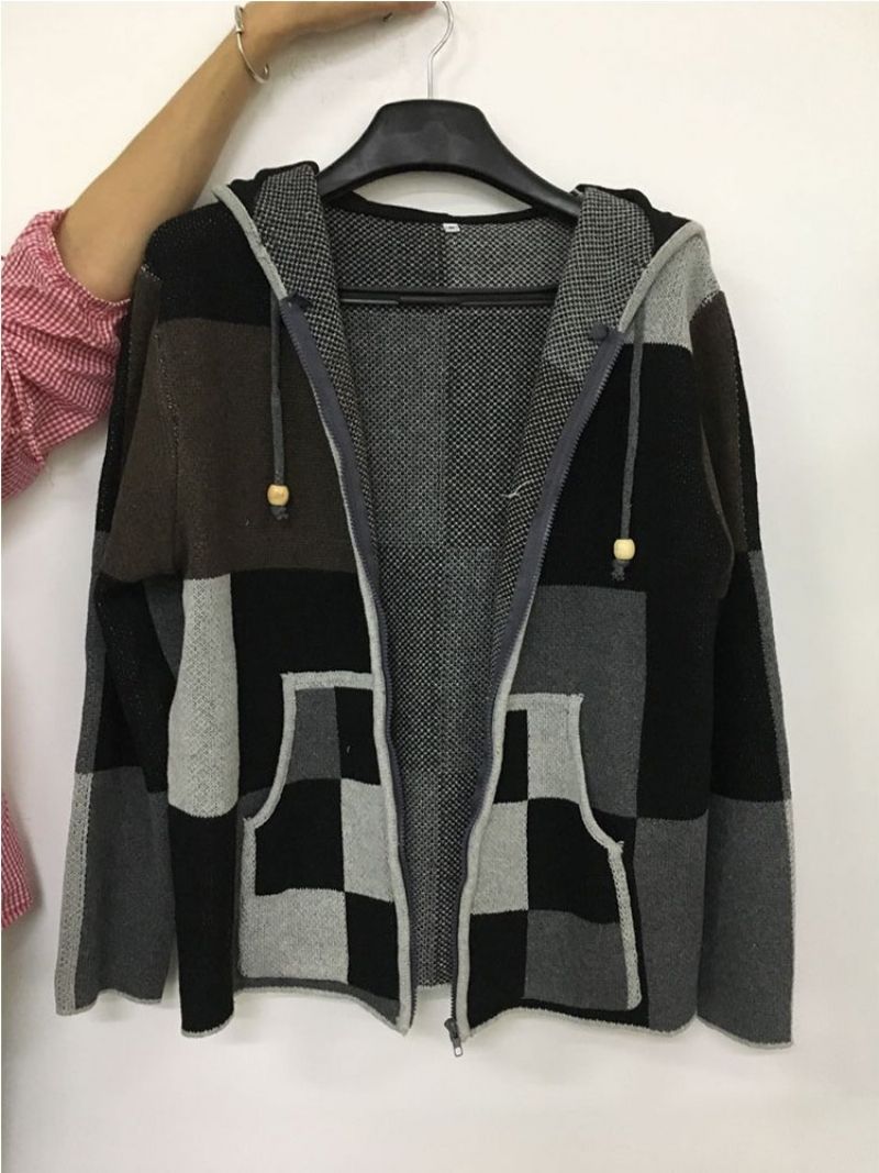 Χαλαρό Vintage Πουλόβερ Με Κουκούλα Μπλοκ χρώματος
